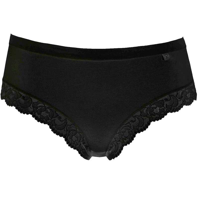 Zadní část je bez krajky. Bavlněné kalhotky mají vyšší bok.