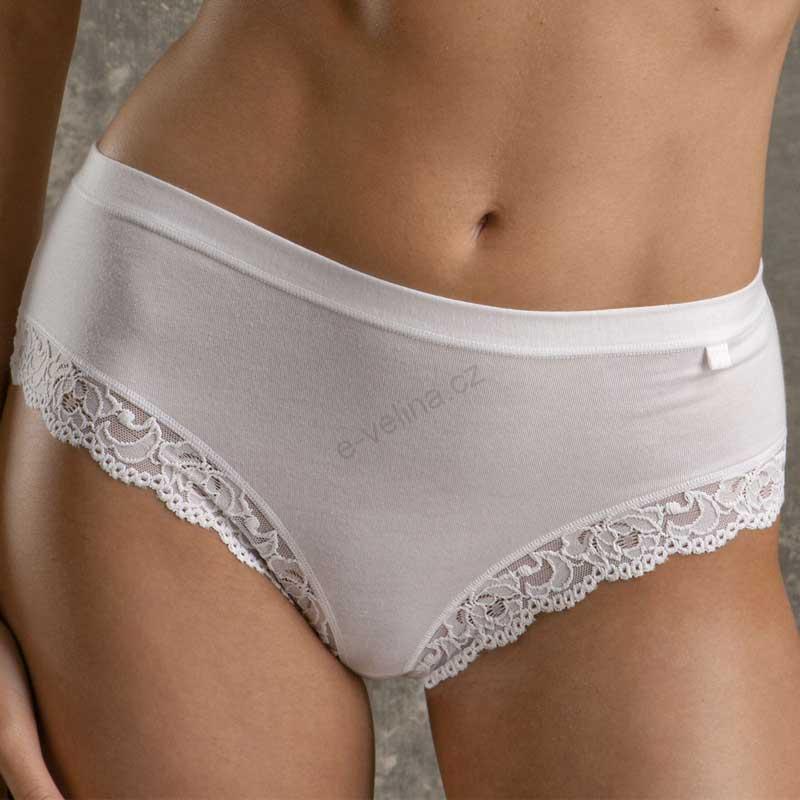 Dámské bavlněné kalhotky s přídavkem elastanu pro maximální komfort a dlouhou životnost. Balvněné kalhotky jsou v přední části nohaviček lemovány krajkou. Zadní část je bez krajky. Bavlněné kalhotky mají vyšší bok. Složení: 86% bavlna, 7% polyamid a 7% elastan celý popis